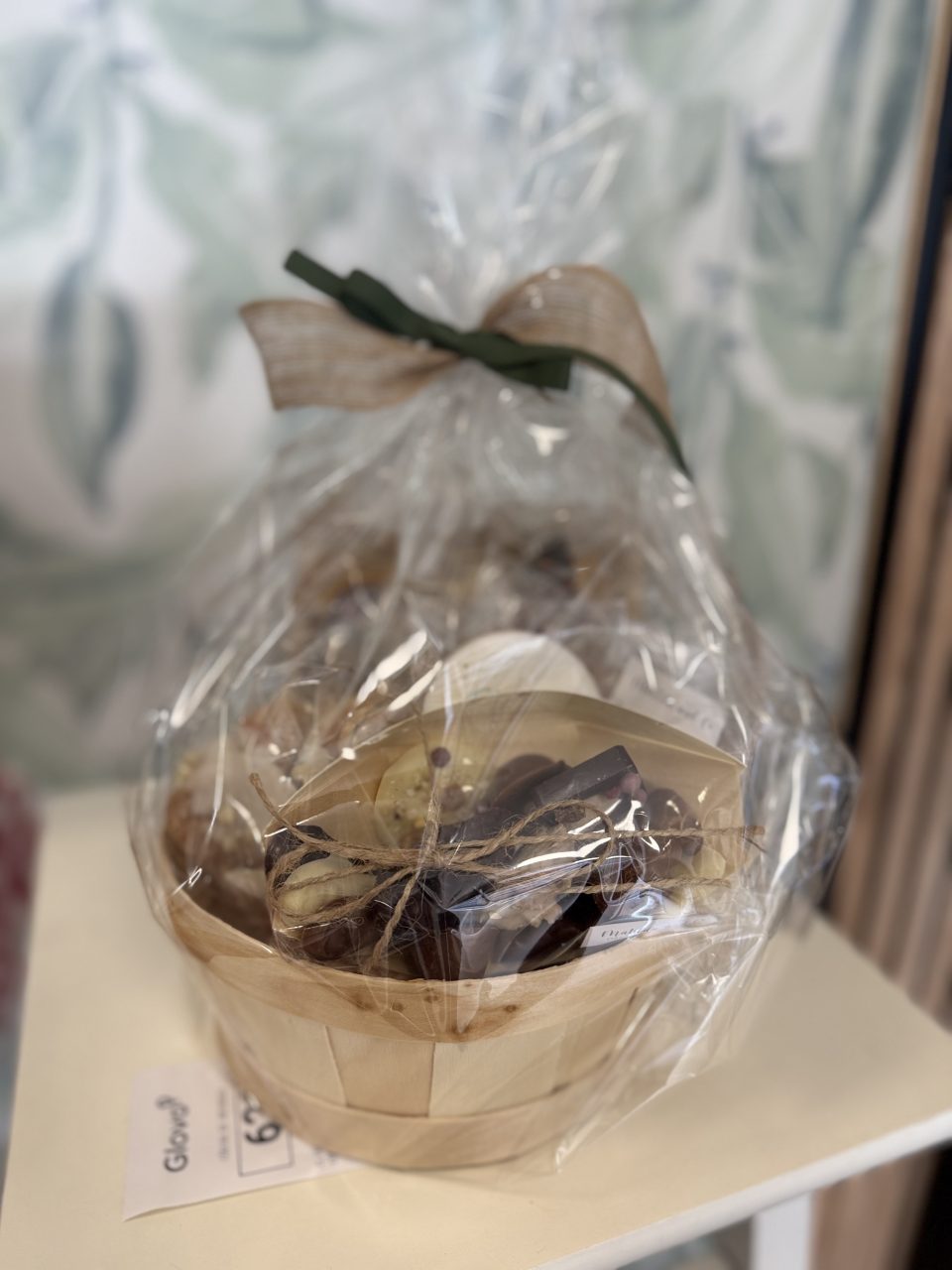 Se presenta en una cesta de madera y contiene un surtido de dulces artesanos. Estos pueden variar según disponibilidad y temporalidad.
