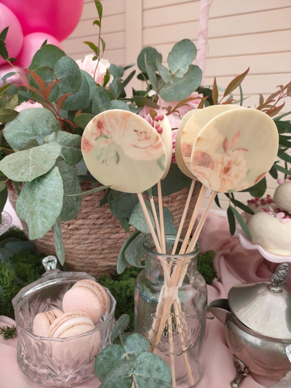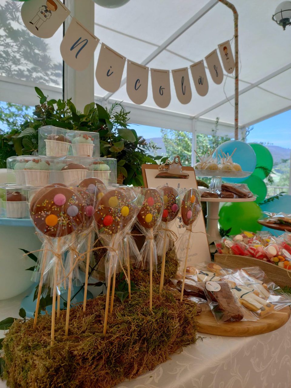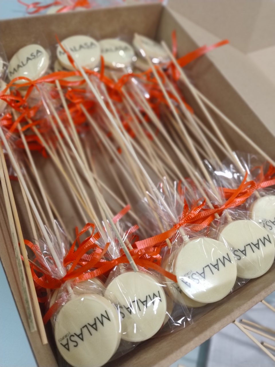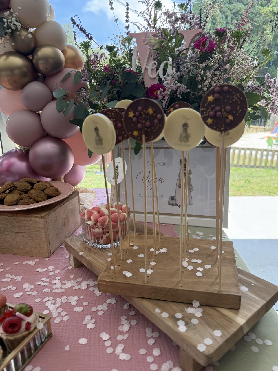 Piruletas artesanas de chocolate blanco o con leche y decoradas con bolitas de chocolate, frutos secos, etc…