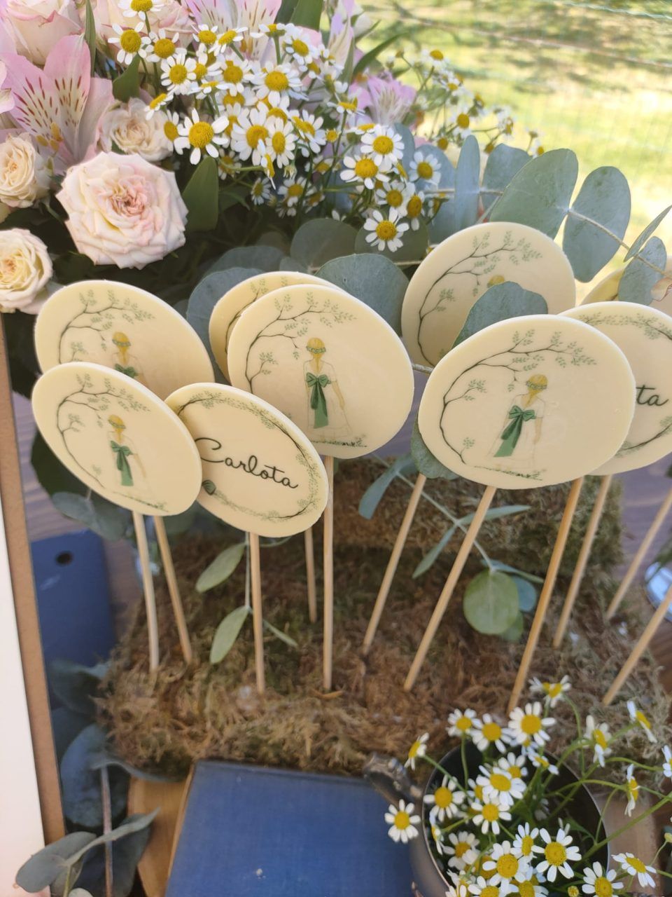 Puedes personalizar las piruletas con una imagen, un nombre, un dibujo. SOLO LAS DE CHOCOLATE BLANCO SON APTAS PARA PERSONALIZAR CON IMAGEN O MENSAJES