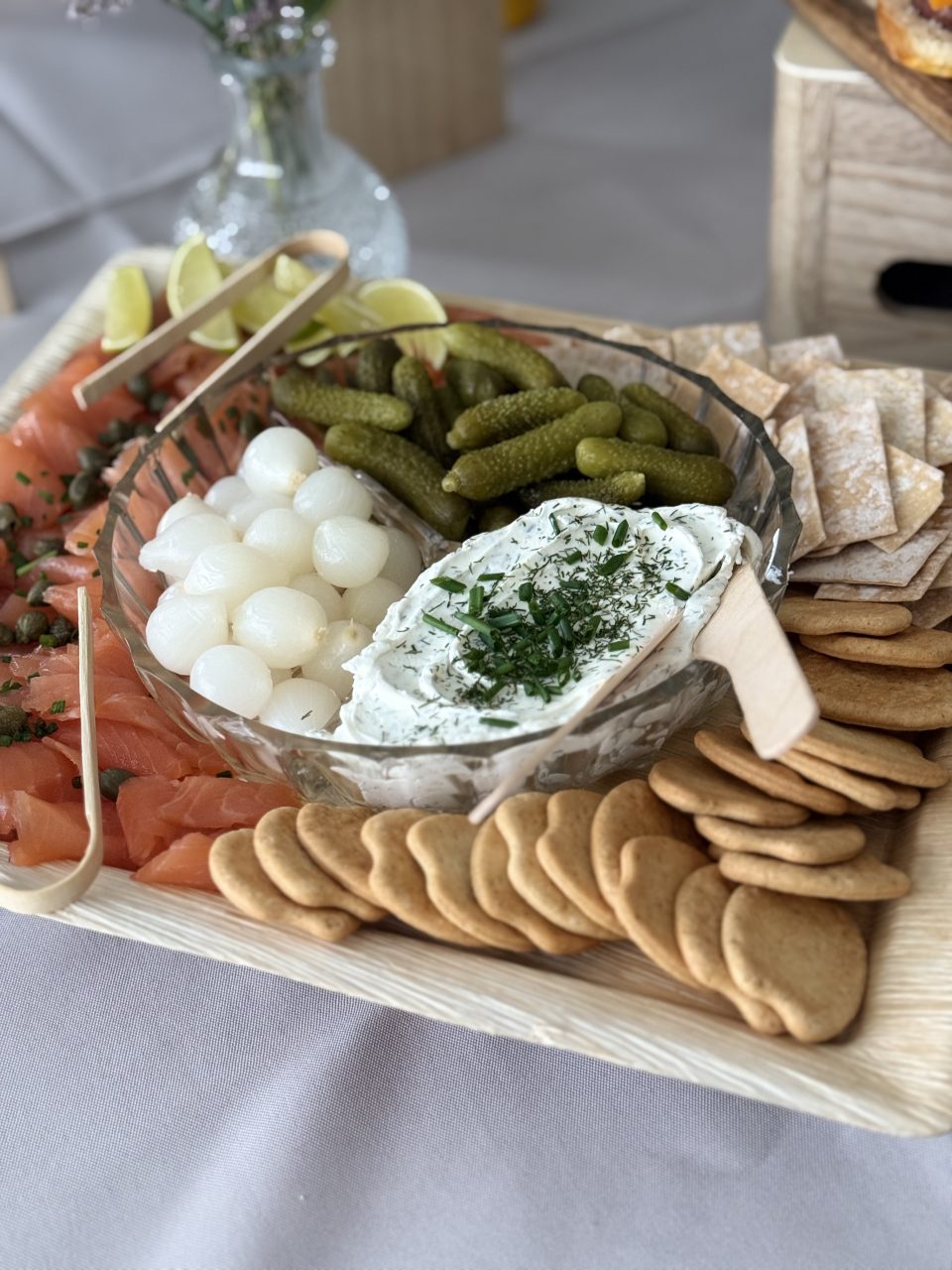 • Tabla de salmón salvaje, con encurtidos , crema de eneldo y tostas