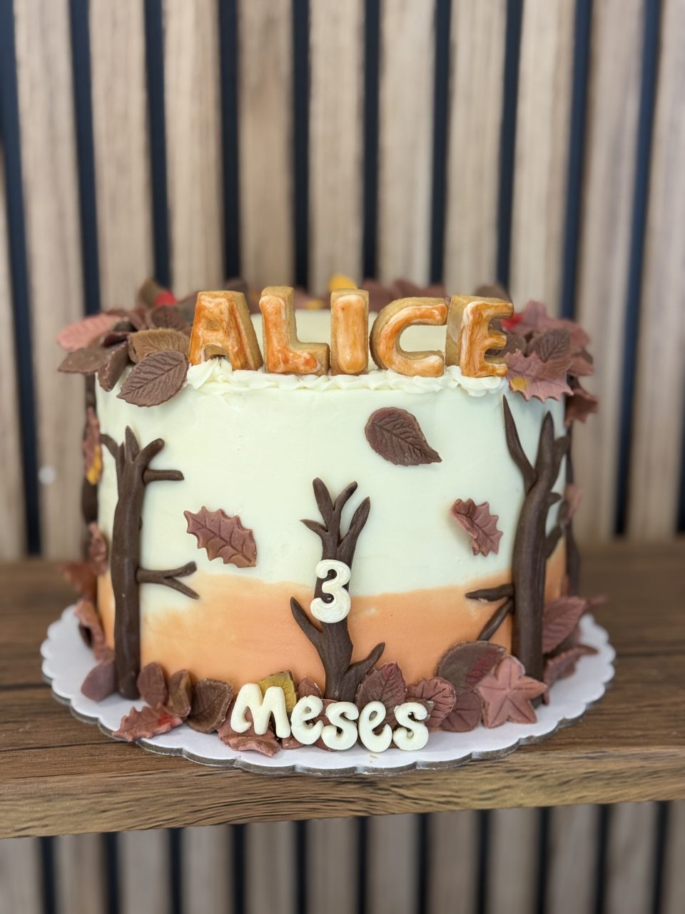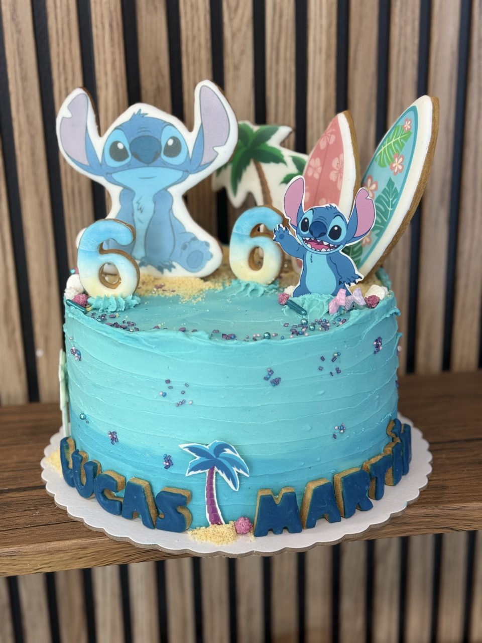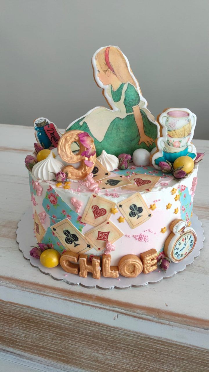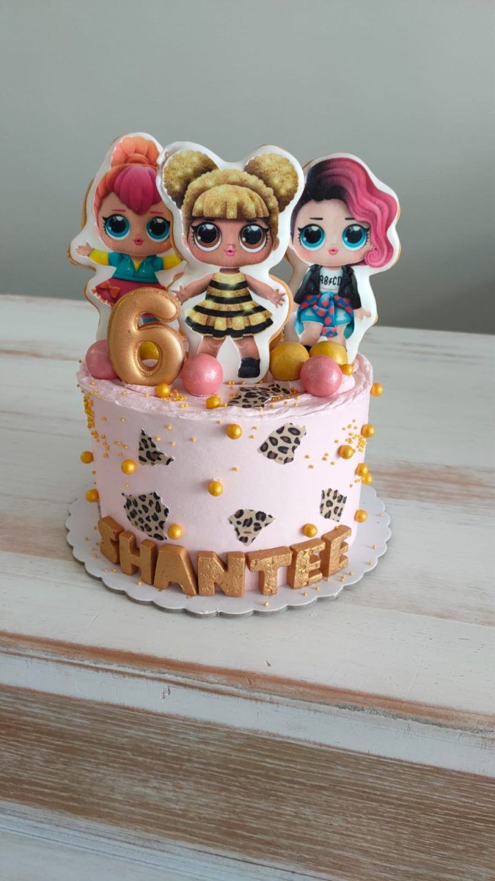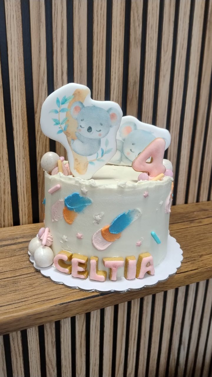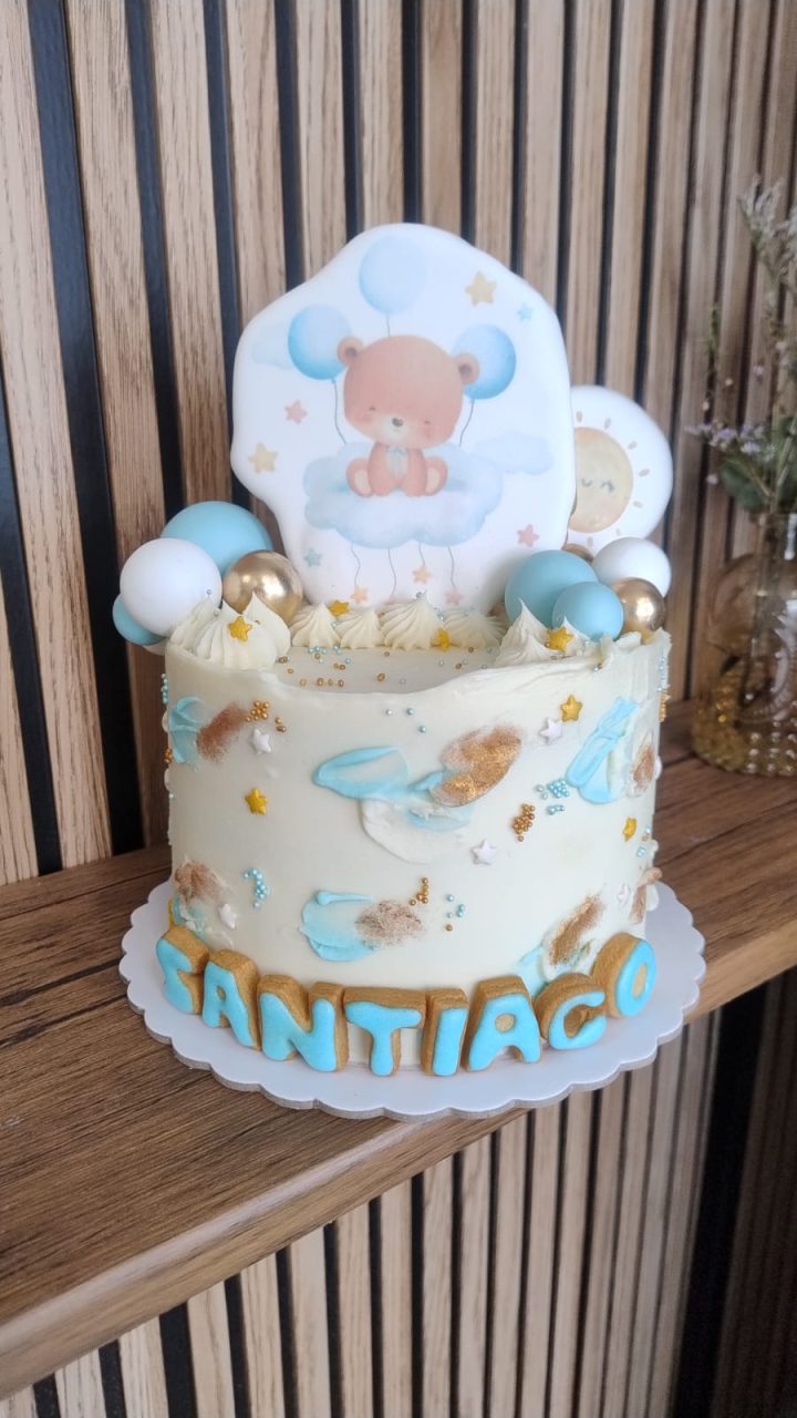 Normalmente y según la temática elegida por el cliente, estas tartas se decoran con galletas. Suelen llevar 3 galletas, edad y nombre. En algunas ocasiones y según nuestro criterio van decoradas con pequeños detalles en fondant en lugar de galletas.
