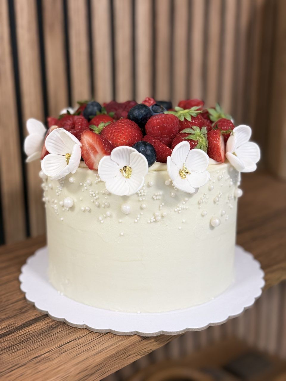 Las tartas de 12, 20 y 30 raciones se presentan en un solo piso.